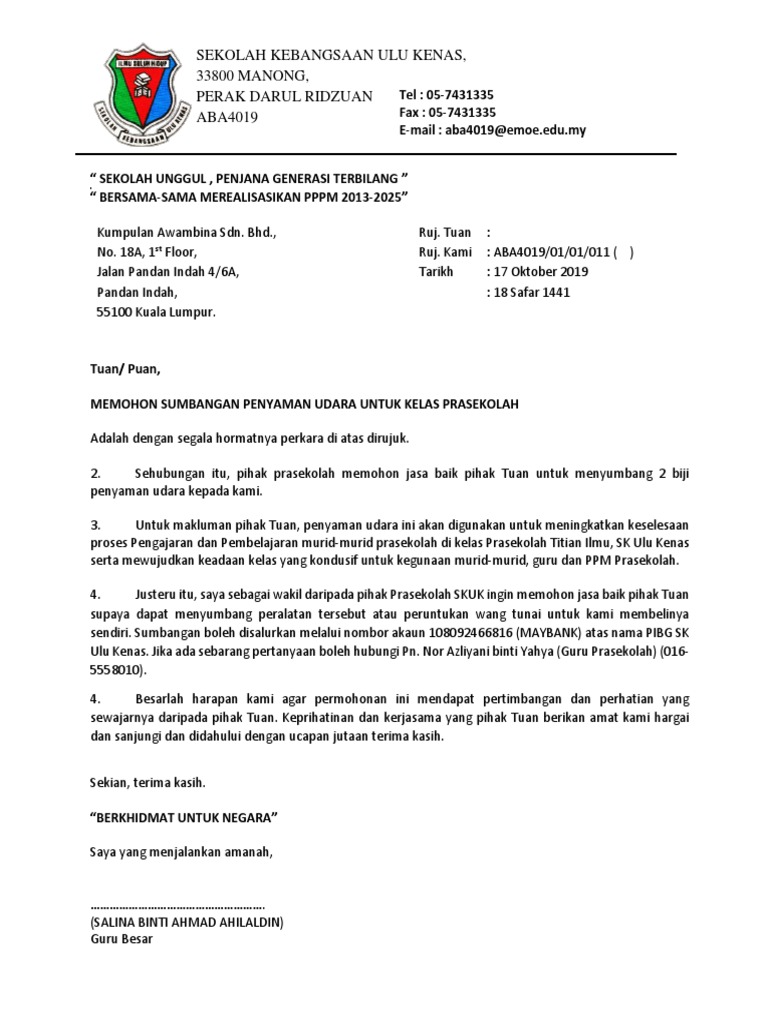 Surat Mohon Sumbangan Aircond Pdf